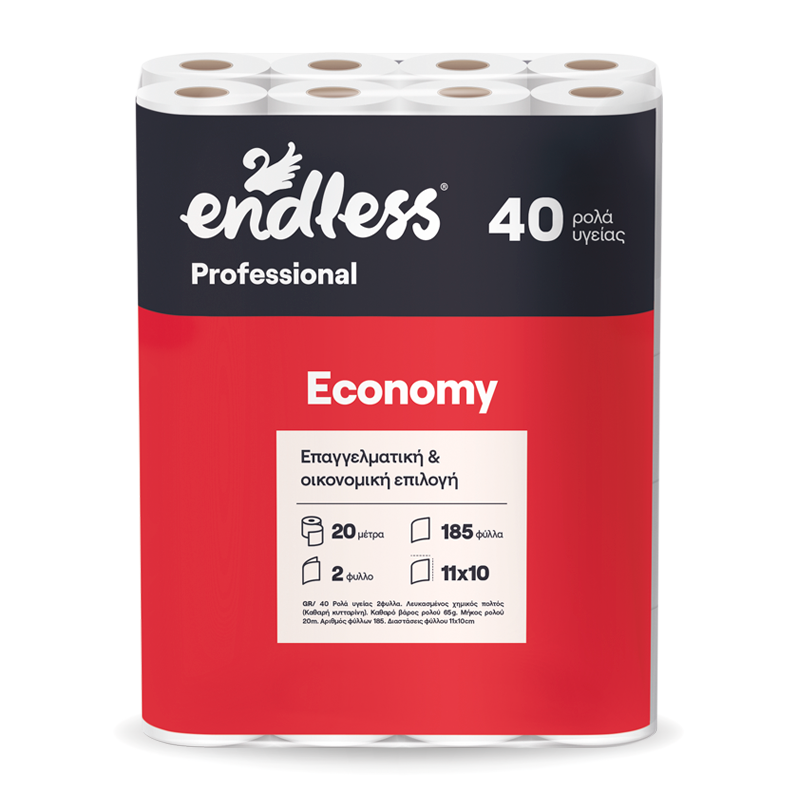 Χαρτί υγείας Economy Endless 100% υδατοδιάλυτο γκοφρέ δίφυλλο 40 ρολά x 70 gr