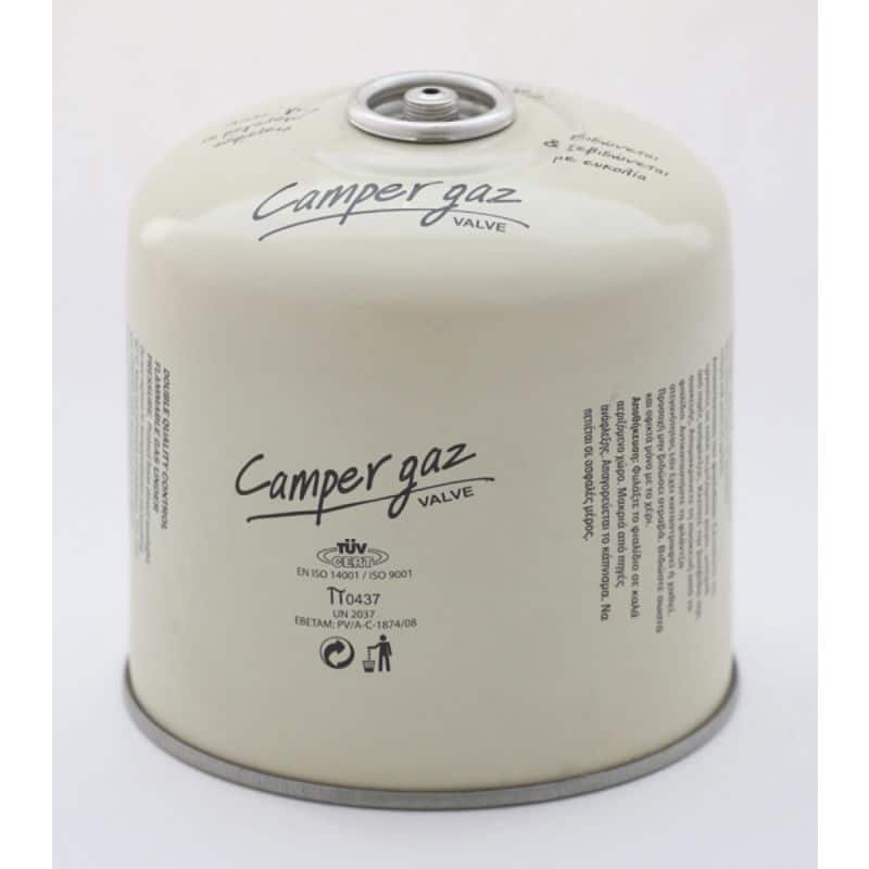 Φιαλίδιο υγραερίου βουτανίου 500γρ Camper με βαλβίδα ασφαλείας σπειρώματος, κατάλληλο για γκαζάκια, διάφορα χρώματα