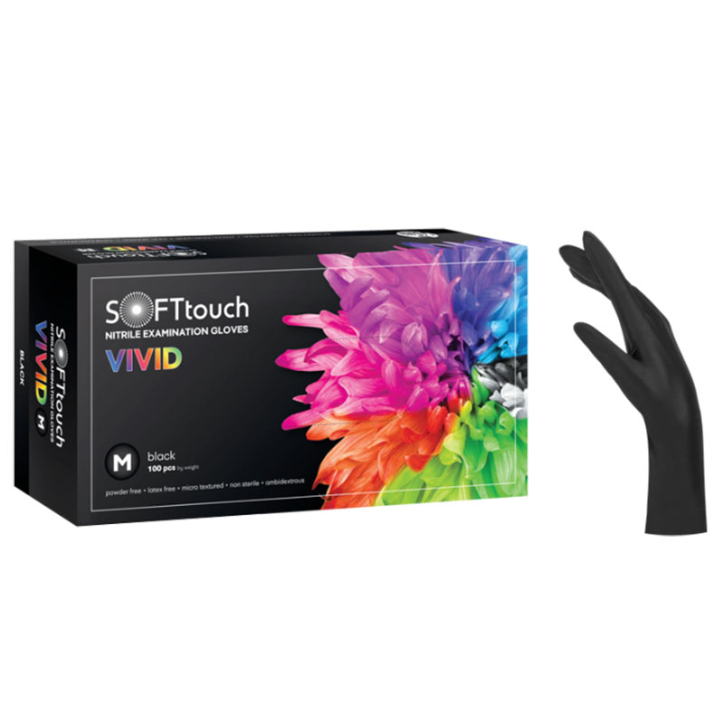 ΓΑΝΤΙΑ ΝΙΤΡΙΛΙΟΥ ΜΑΥΡΑ SOFT VIVID XSMALL, υψηλή ελαστικότητα με εύκολη και άριστη εφαρμογή, ιδανικά για άτομα με αλλεργία στο latex, χωρίς πούδρα, επίσης κατάλληλο για επαφή με τρόφιμα, συσκευασία 100τμχ