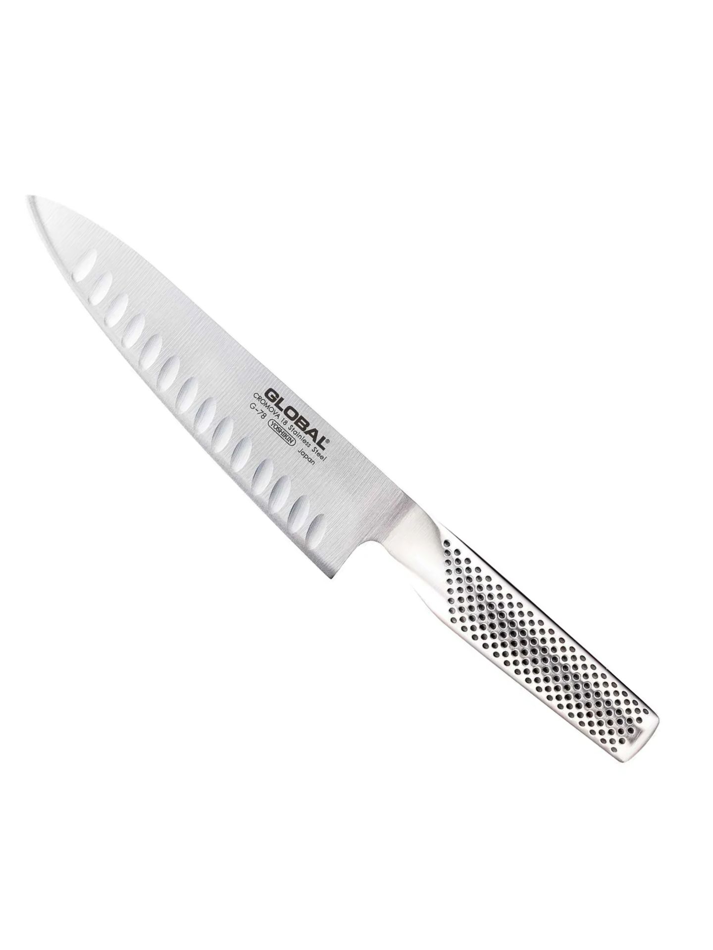 ΤΟ GLOBAL G-78 EΙΝΑΙ ΕΝΑ ΜΑΧΑΙΡΙ CHEF ME AYΛΑΚΩΣΕΙΣ, ΛΕΠΙΔΑ 18εκ, ΑΠΟ ΣΦΥΡΗΛΑΤΟ ΑΝΟΞΕΙΔΩΤΟ ΑΤΣΑΛΙ (Cromova 18), σειρά “Global Classic G”