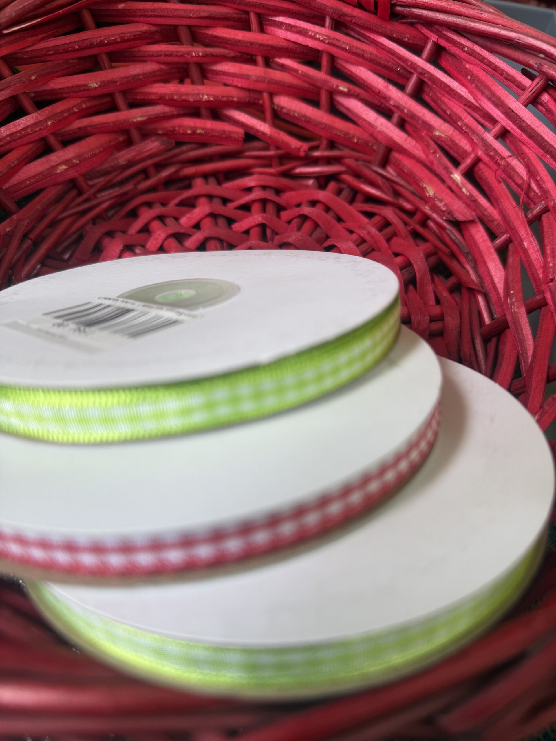 Κορδέλα καρώ ύφασμα 6mmX50m σε χρώμα λαχανί, ροζ, σιελ, κόκκινο, μπλε navy