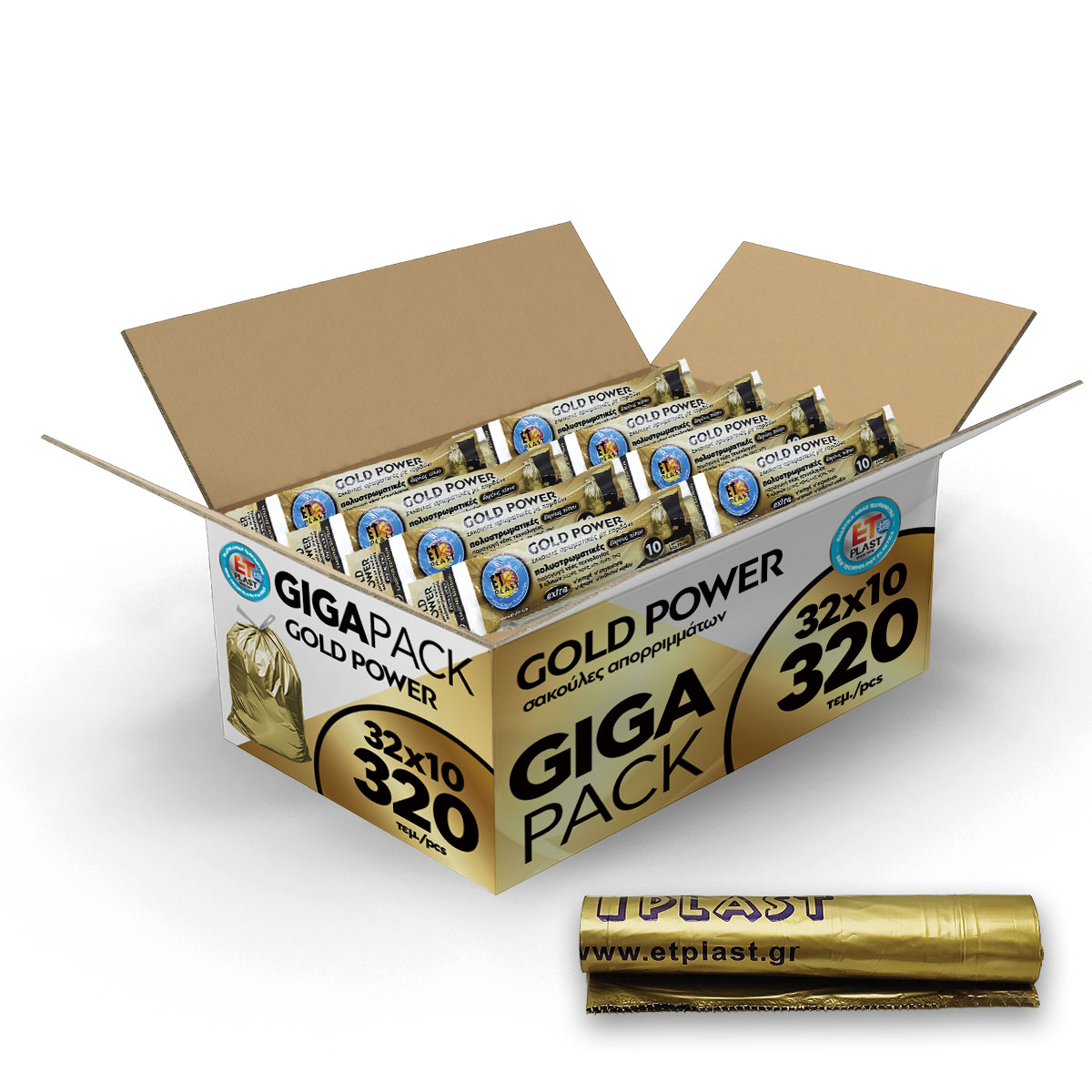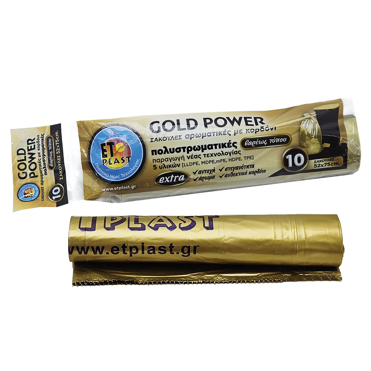 Σακούλα απορριμμάτων Gold/Black 52x75cm με κορδόνι ΕΤ ΠΛΑΣΤ ρολό 10τμχ