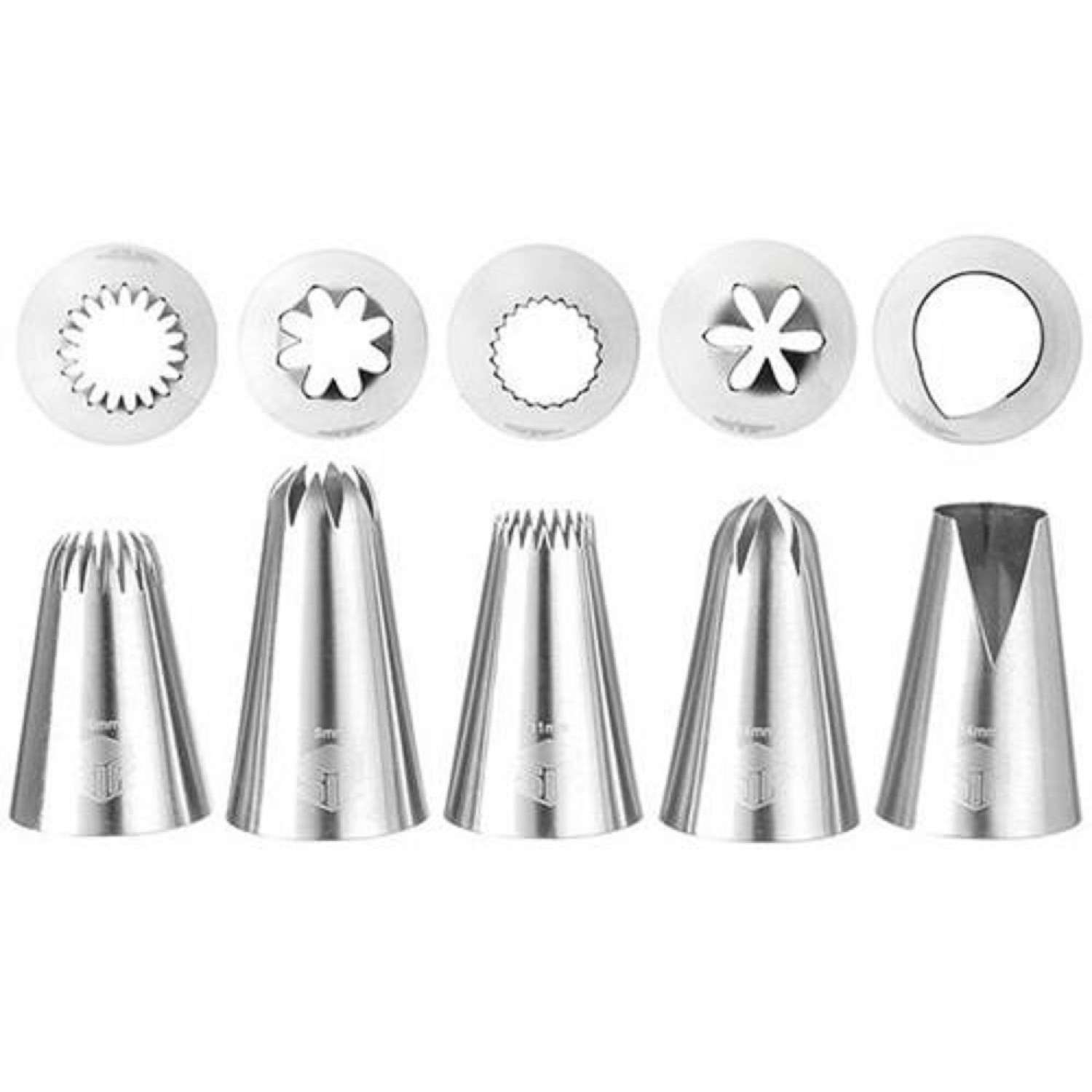 Μύτες Κορνέ “Flower & Petal”, σετ από 5 μύτες διακόσμησης inox: – 2 μύτες για κλειστά αστέρια – 1 μύτη άνθος – 1 μύτη για πλατύ αστέρι- 1 μύτη σε σχήμα V