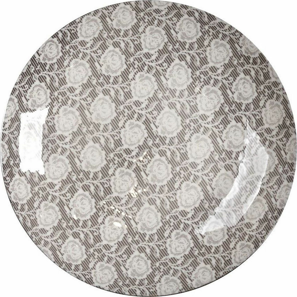 Σετ Πιάτα πορσελάνης 18τμχ Γκρι με λευκά λουλούδια DAP Espiel