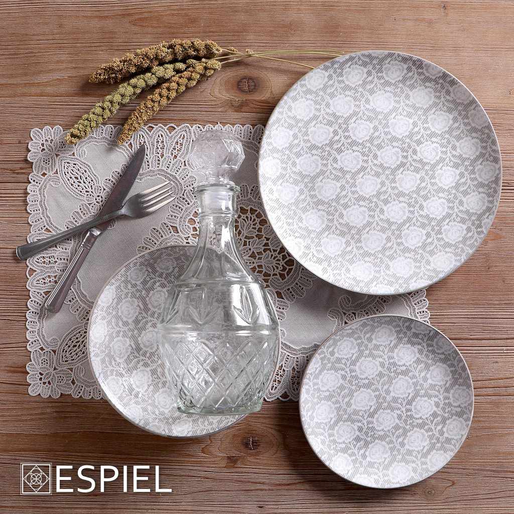 Σετ Πιάτα πορσελάνης 18 τεμαχίων σε Γκρι χρώμα με λευκά λουλούδια, Espiel