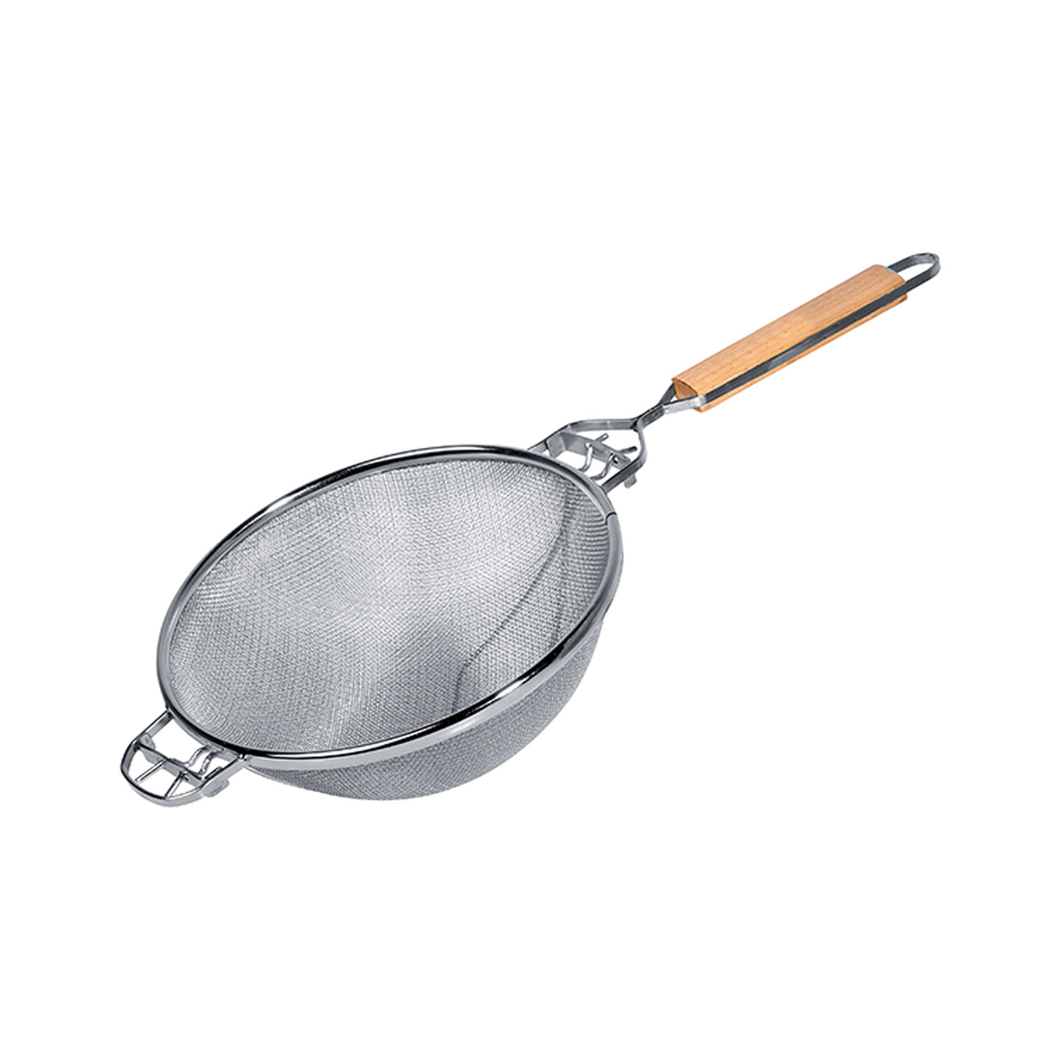 Σουρωτήρι επαγγελματικό με ενισχυμένο χέρι inox εισαγωγής, 25,6cm. Το σκεύος διαθέτει διπλό πλέγμα για καλύτερο στράγγισμα και ξύλινη λαβή με ενισχυμένο βραχίονα για εργονομική χρήση.