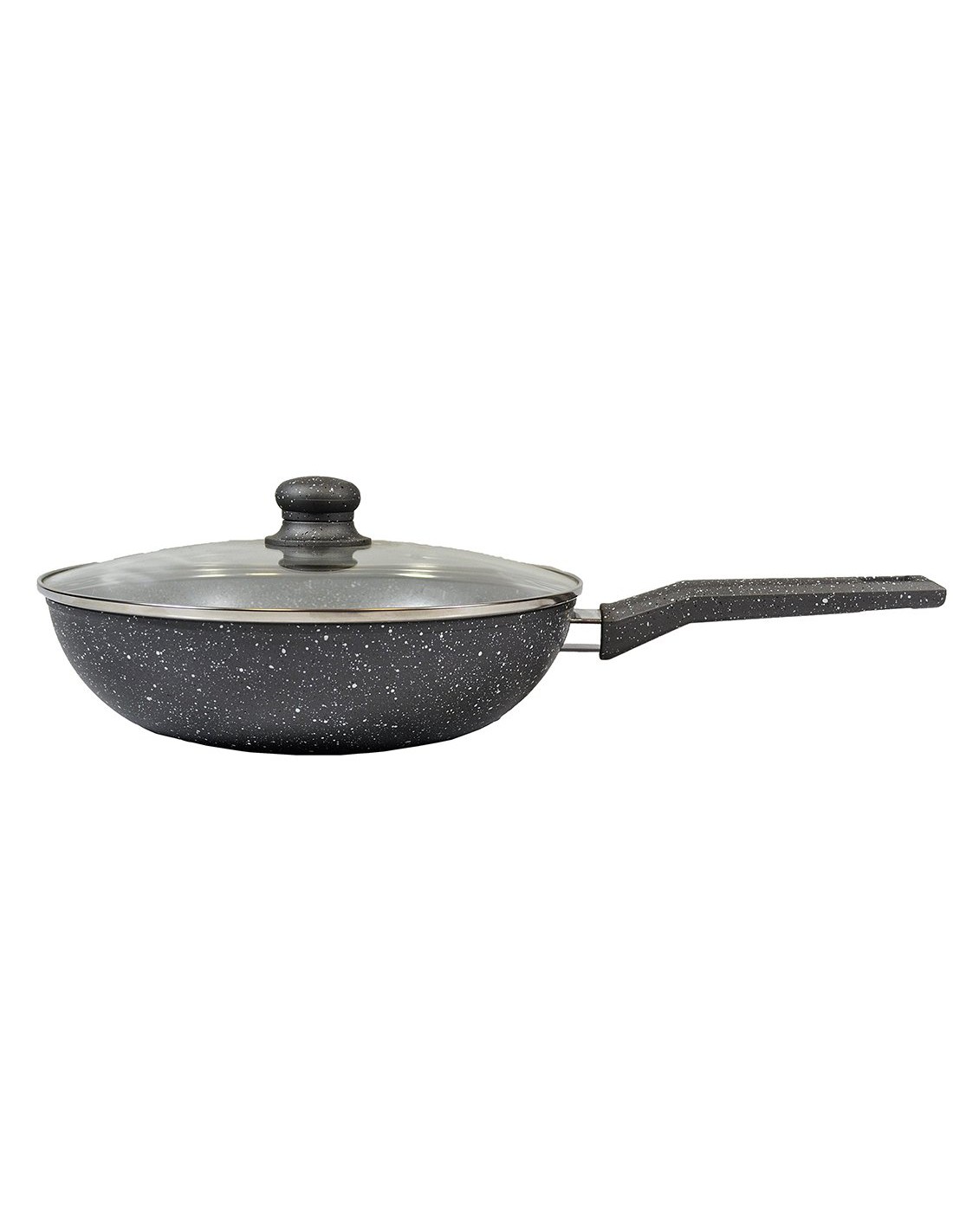 Τηγάνι Wok οικιακό γρανίτης με γυάλινο καπάκι 28cm Sidirela