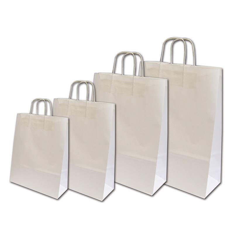 ΤΣΑΝΤΑ ΧΑΡΤΙΝΗ ΛΕΥΚΗ ΜΕ ΣΤΡΙΦΤΟ ΧΕΡΙ, διαστάσεις 46,5x36x13cm, ιδανική για συσκευασία δώρου
