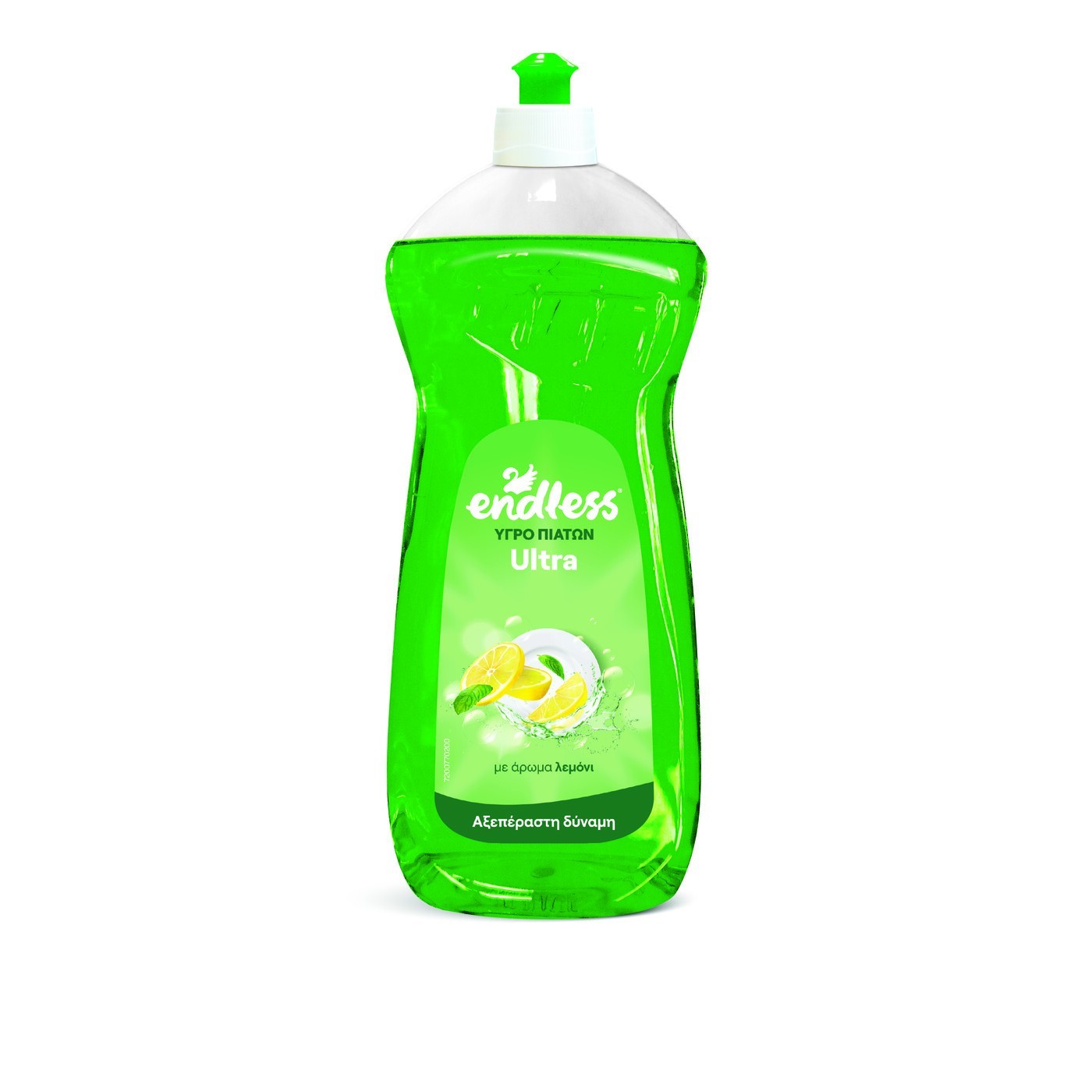 Υγρό πιάτων λάντζας συμπυκνωμένο, με άρωμα λεμόνι και βότανα, και με άρωμα πορτοκάλι και βασιλικό, Endless “Ultra” 750ml.